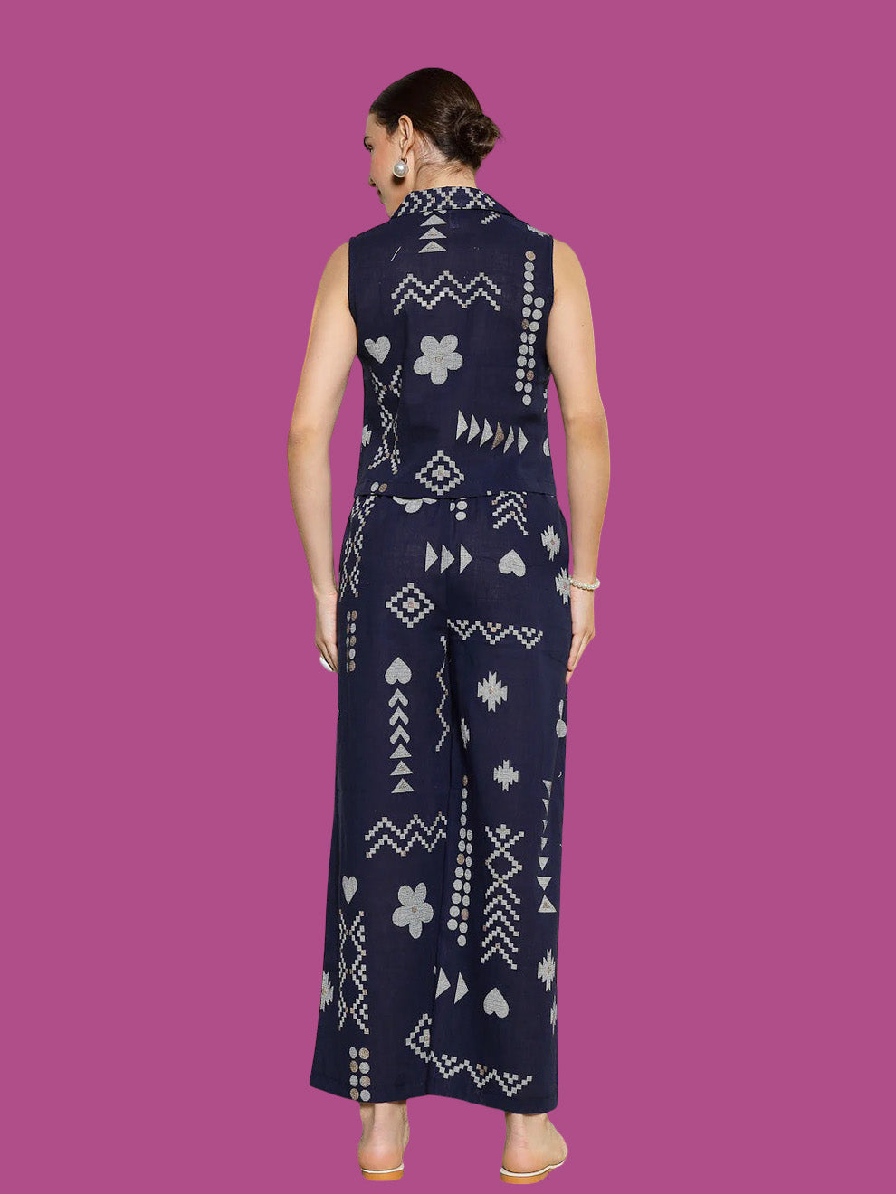 Blue Geometric Printed Rayon Slub Co-Ord Set