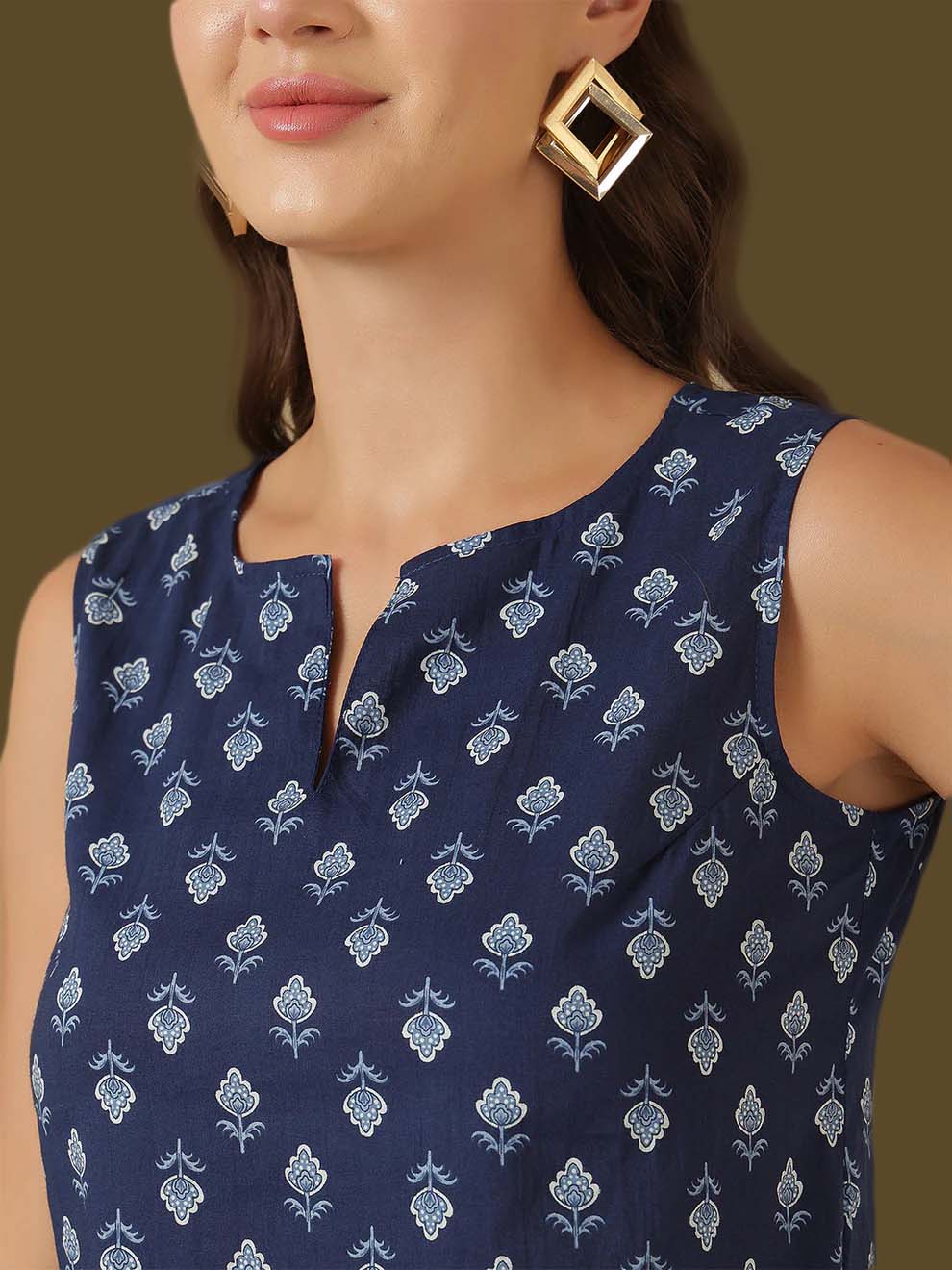 Women Blue Printed Straight Top